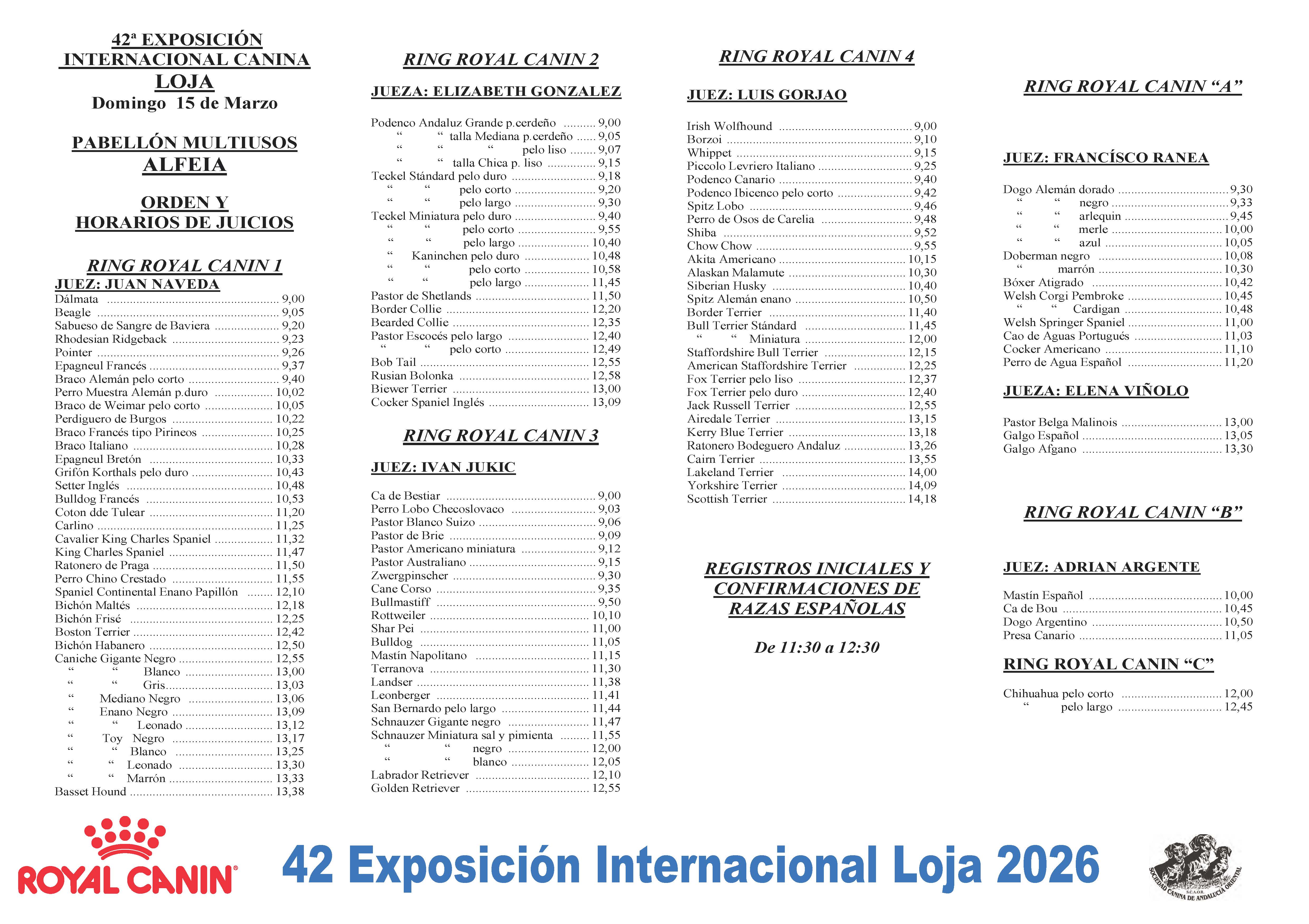 DEBIDO AL AUMENTO SIGNIFICATIVO DE EJEMPLARES INSCRITOS PARA ALGUNOS JUECES NOS HEMOS VISTO OBLIGADOS A CAMBIAR LAS RAZAS WELSH CORGI AL JUEZ FRANCISCO RANEA Y LA RAZA CHIHUAHUA EN SUS DOS VARIEDADES AL JUEZ ADRIAN ARGENTE DEL CASTILLO